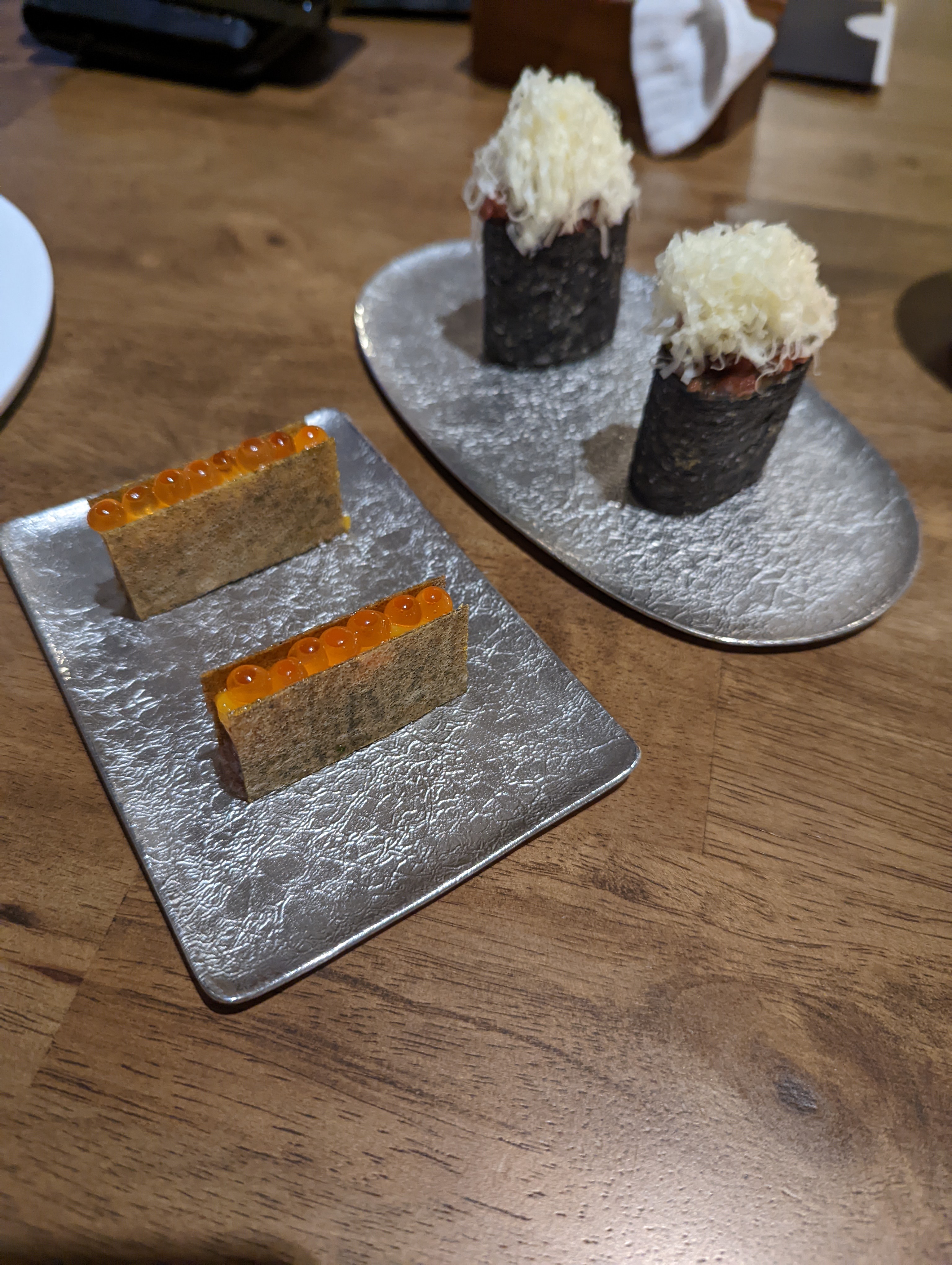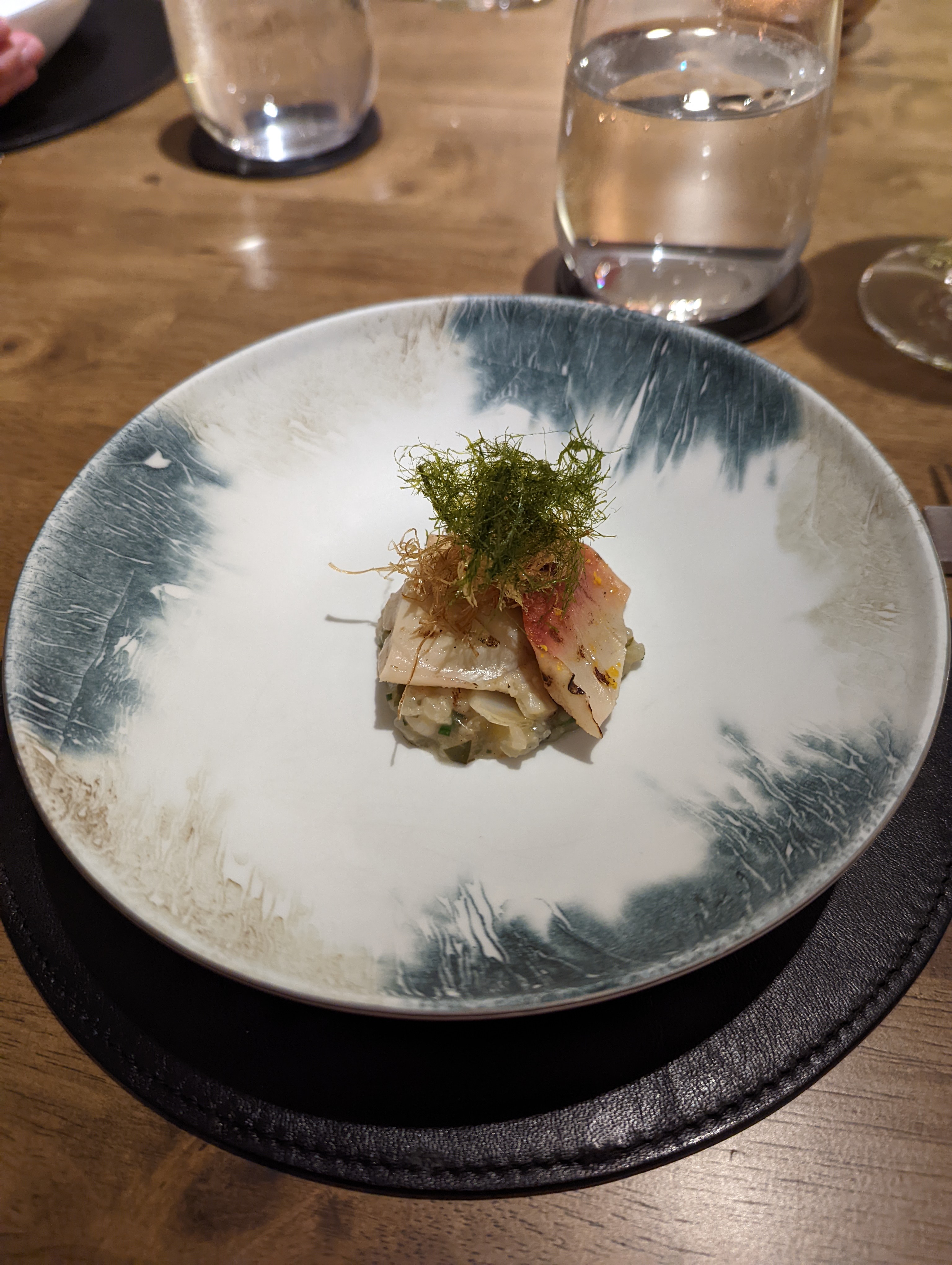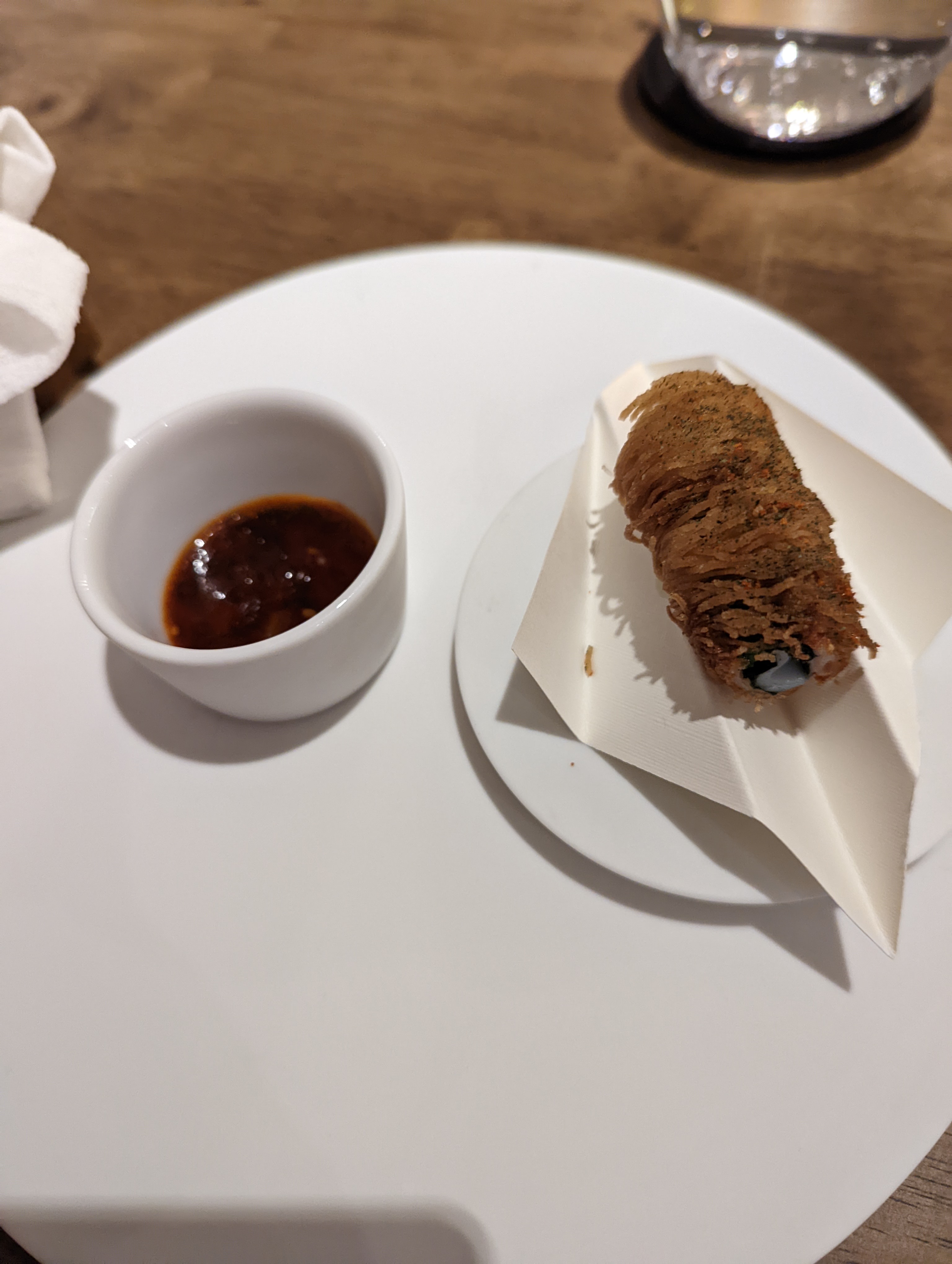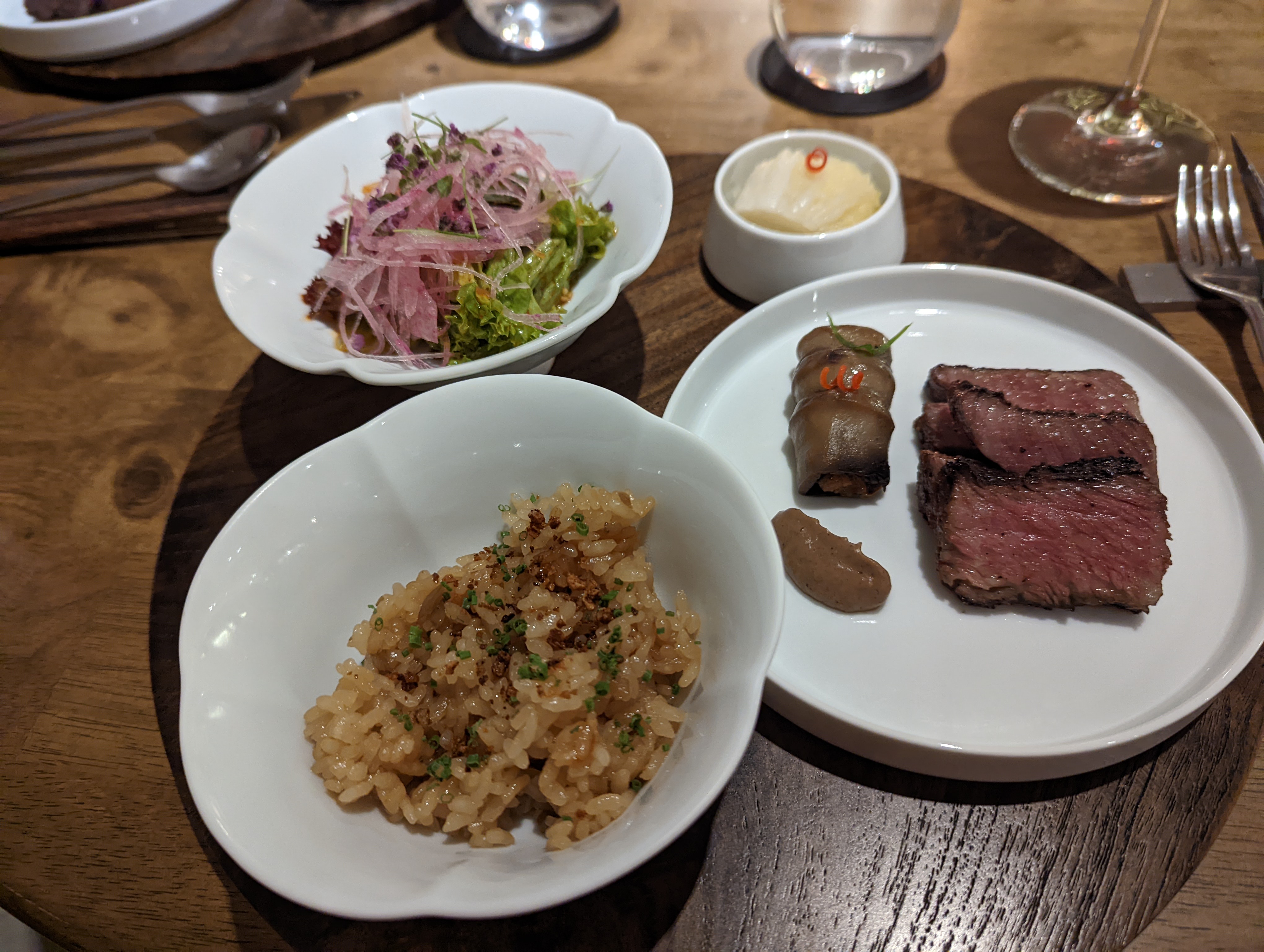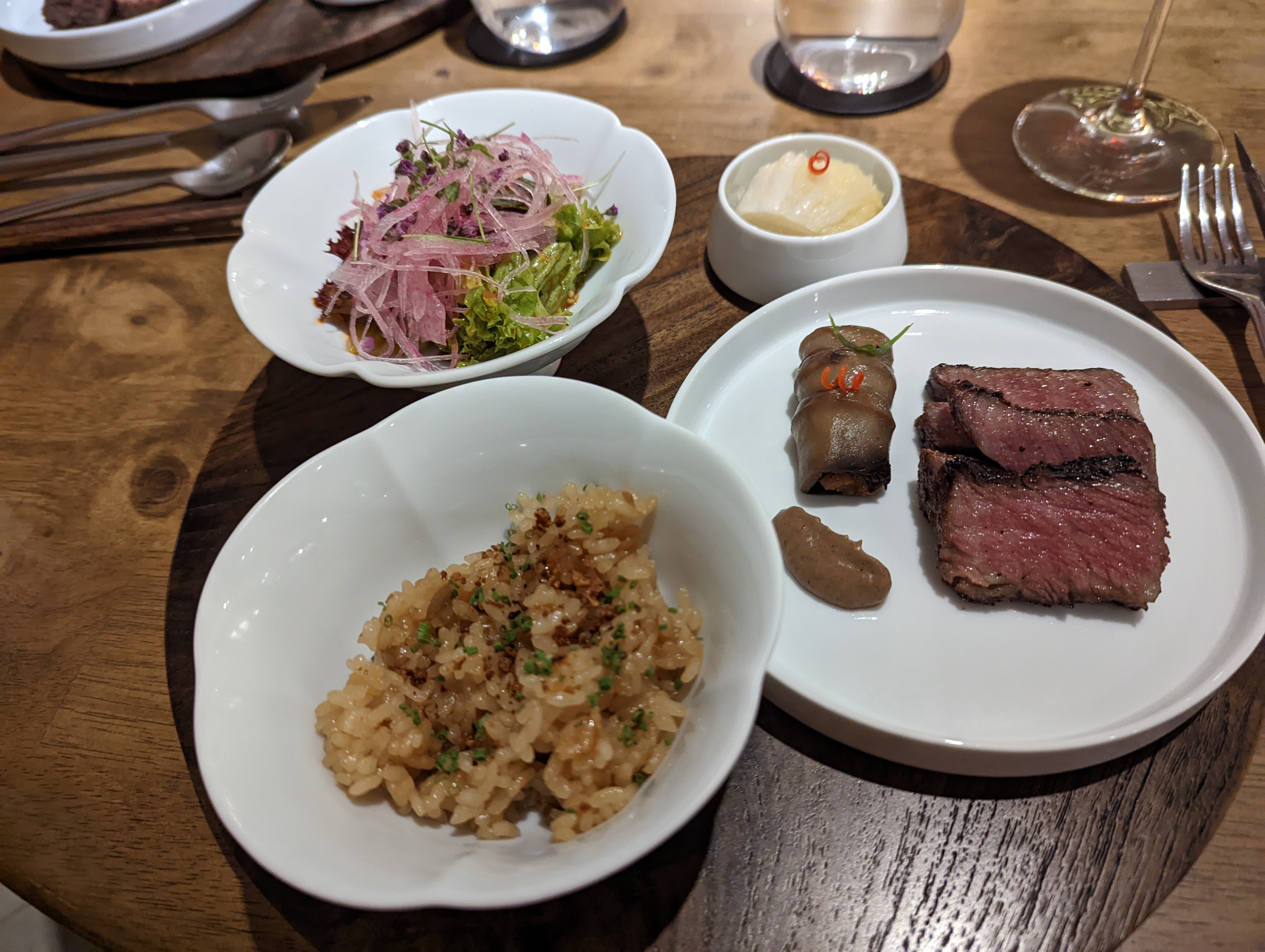 Very unassuming entrance to this fine dining restaurant! I’ve never had fine dining korean food, so this was a first. Beautiful interior, and lovely wait staff. Best dishes were the tuna sandwich and gimbap, but the ultimate was the Korean BBQ. It was the perfect taste combination; fatty meat, fresh veges, crispy white kimchi, and warm comforting rice. Definitely the highlight of the entire menu, would just come back for that! While the other dishes were good, they didn’t stand out like the BBQ dish did.