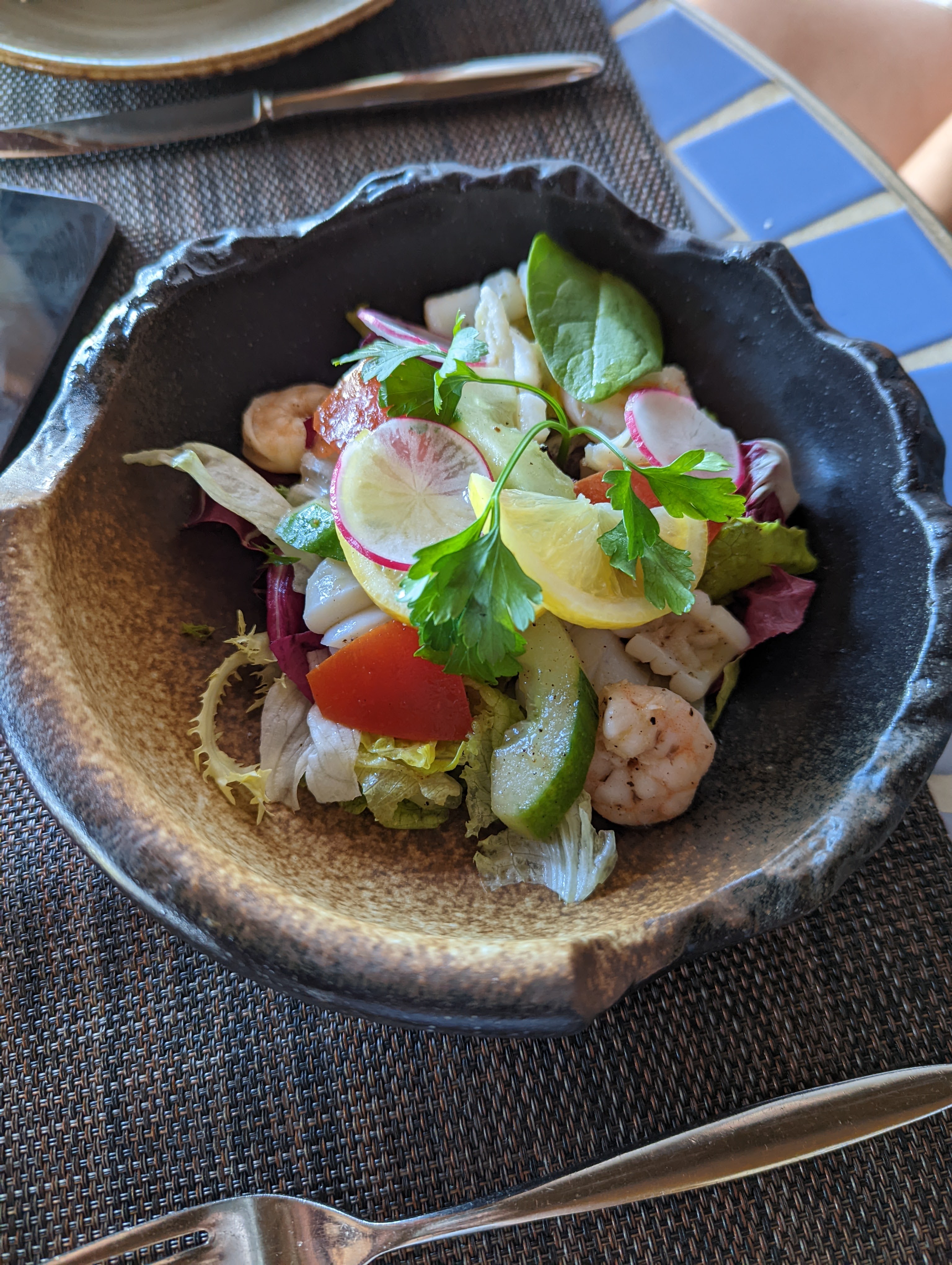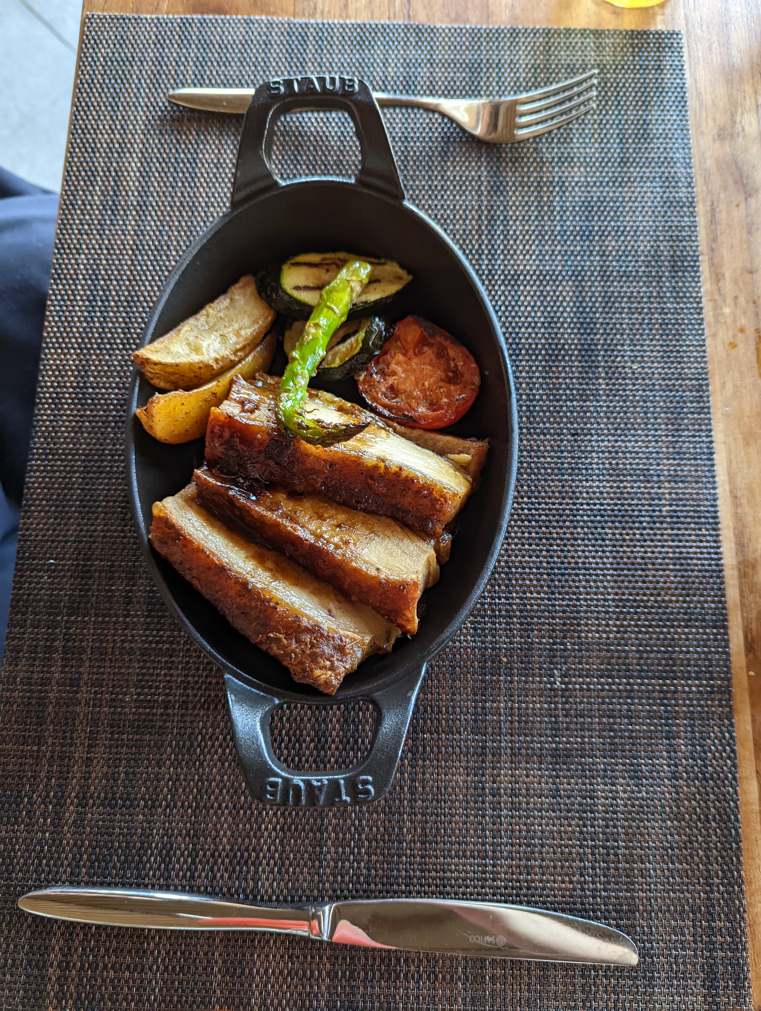 Italian restaurant by day, Mediterranean by night. Highlights were definitely the arancini balls, very cheesy and truffly. Pizza was wood-fire oven made and pretty crispy. The pork belly came in huge serving sizes, never would have complained about too much meat before! The lobster bisque was a bit too rich for my liking. Otherwise pretty delicious!